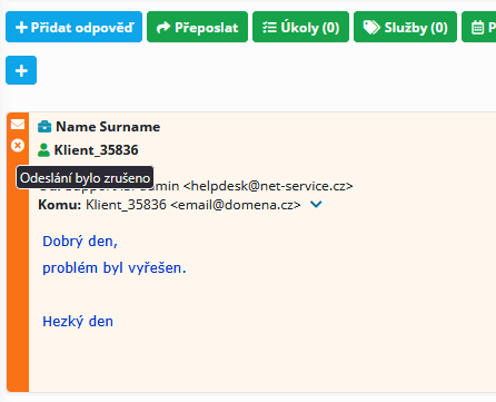 Označení a zvýraznění zrušené odpovědi v tiketu