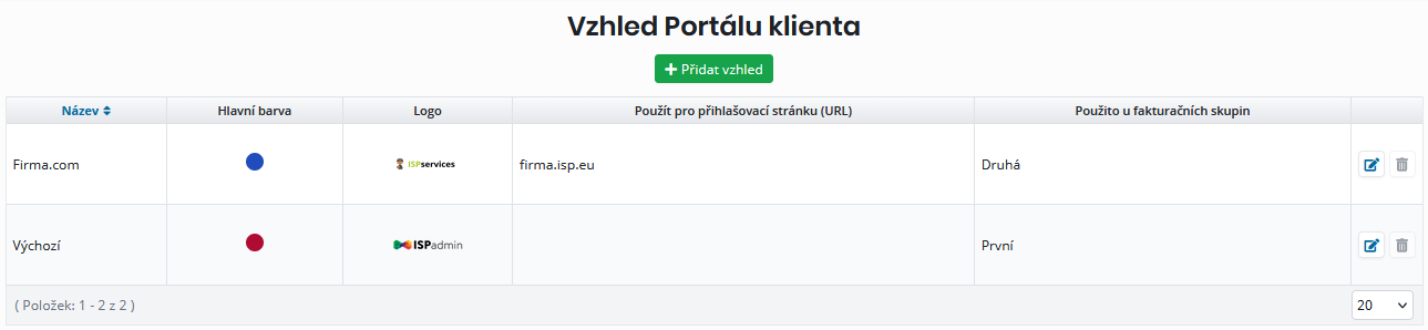 Nastavit lze jiné logo a jiné barevné schéma pro každou instanci KP zvlášť. Jednotlivé KP jsou rozděleny pro klienty dle fakt. skupiny.