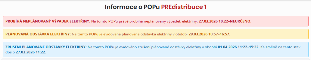 Prozatím pouze pro CZ LOKALIZACI – plánované odstávky elektřiny (ČEZ distribuce, EG.D, PREdistribuce)