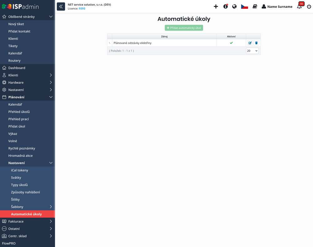 Přidat / Upravit automatický úkol